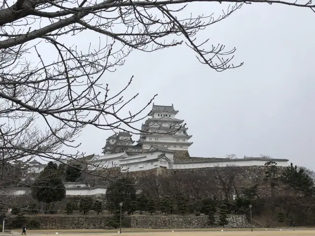 姬路城的白牆如白鷺展翅又名「白鷺城」。歷史幽久、保存完好,連立式的天守群,典雅風格,因而有「日本第一名城」的美譽。含苞待放的櫻花樹林立,這裡應該有春季賞櫻🌸的絕美風景。