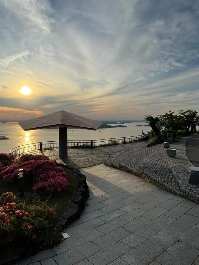 山頂看出去整個瀨戶內海超美,很有開闊感。日落時間來真的加分,顏色很柔很療癒。