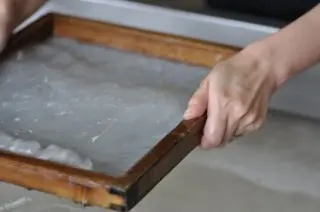 手抄紙的步驟其實不難,就是把已經溶解的和紙原料倒進模具裡,不過要把採來的花草擺上去就有點難度。要讓花不變成立體的樣子還要一朵一朵排好,但很容易散開,沒辦法好好放上去,感覺有鑷子會更方便。有人說白色花會消失,實際上到底會不會看不到,如果現場有明信片、掛飾、色紙等成品可以參考就更好了。整體來說做出來的成品很滿意,也成為很棒的回憶。